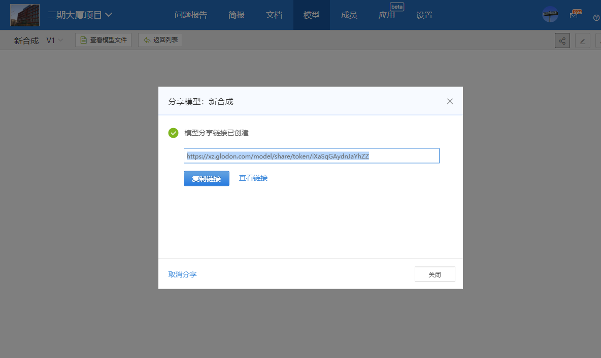 2、 新增合成模型的分享功能,允许项目之外的人通过分享链接查看项目中的合成模型