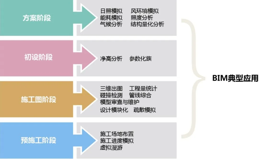 方案设计阶段的BIM应用主要是利用BIM技术对项目的设计方案进行数字化仿真模拟 表达以及对其可行性进行验证,对下一步深化工作进行推导和方案细化。利用BIM软件对 建筑项目所处的场地环境进行必要的分析,作为方案设计的依据。进一步利用BIM软件建立建筑模型,输入场地环境相应的信息,进而对建筑物的物理环境、出入口、人车流动、结构、节能排放等方面进行模拟分析,选择最优的工程设计方案。