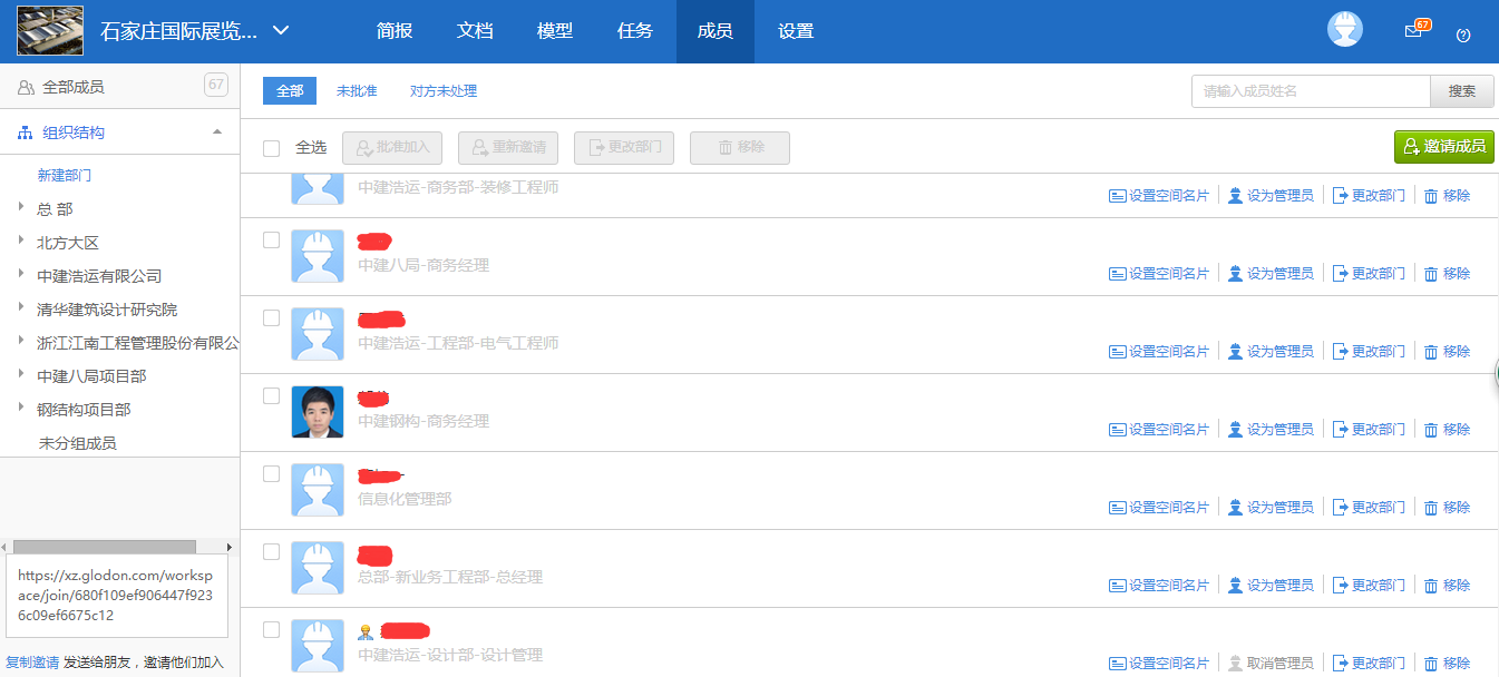 其实协筑除了以上提到的任务和文档模块,还有模型、成员等其他模块,模型模块中,您可以在线体验BIM的轻量化浏览,并且可以根据建筑结构、楼层、管道等不同专业查看内容,也可以对模型进行剖切,同时可以在出现问题的地方添加批注、评论等。最后要说一下成员模块,顾名思义,这里其实主要是针对人员组织结构的设置,作为一款工程协作平台,协筑最大的特点就是可以实现跨方协作,在成员这个模块中,空间创建者可以邀请各参建方到这里来,可以给每个参建方自定义设置相应的空间权限,让跨方之间的协作沟通可以更加有条不紊地展开。