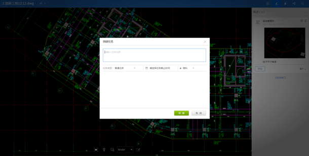 当然从批注也可以发起任务,直接指派给相关的设计人员去修改处理,设计人员收到任务短信提醒,就能够快速的修改图纸解决问题,极大提高协作的效率。