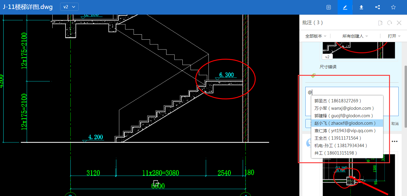 3、问题追踪-批注和评论留痕、可追溯,问题可直接@落实到人。通常在跨方协作中,最容易导致沟通出现问题的原因通常都是具体责任人不明确,权责不明,从而互相推卸责任。因此,留痕追溯也是各方在协同办公的过程中需求度较高的点。协筑批注留痕的功能缓解了项目的一大痛点问题。