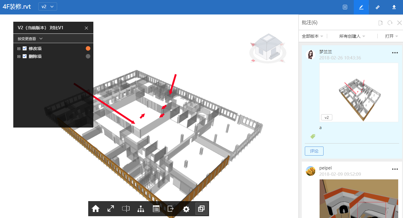 8. 新增在模型版本对比模式下支持批注与回看。【产品更新日志】2月动态-协筑