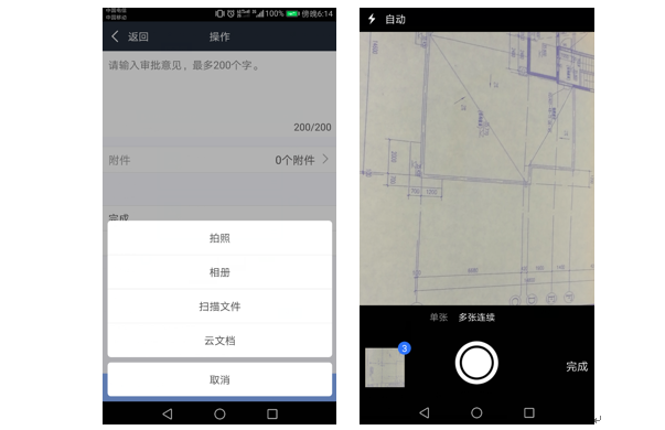 11. 新增添加流程附件可直接通过协筑移动端扫描图纸、文件生成任务PDF,适用于创建流程时,把需要审核人电子签名的纸质文件扫描上传作为附件,无需再通过扫描仪,后续PDF扫描功能也会同步到上传文件。